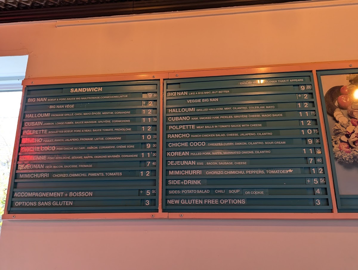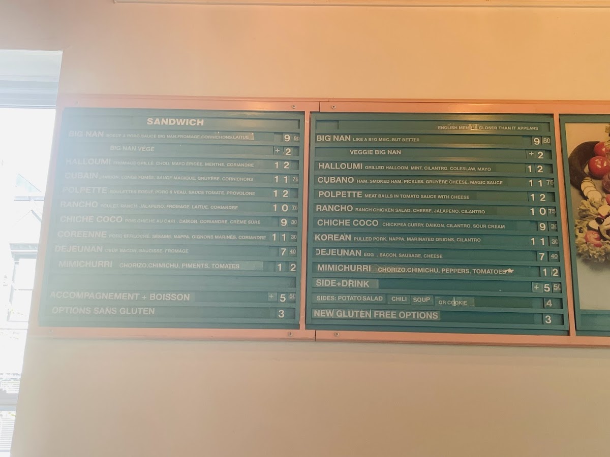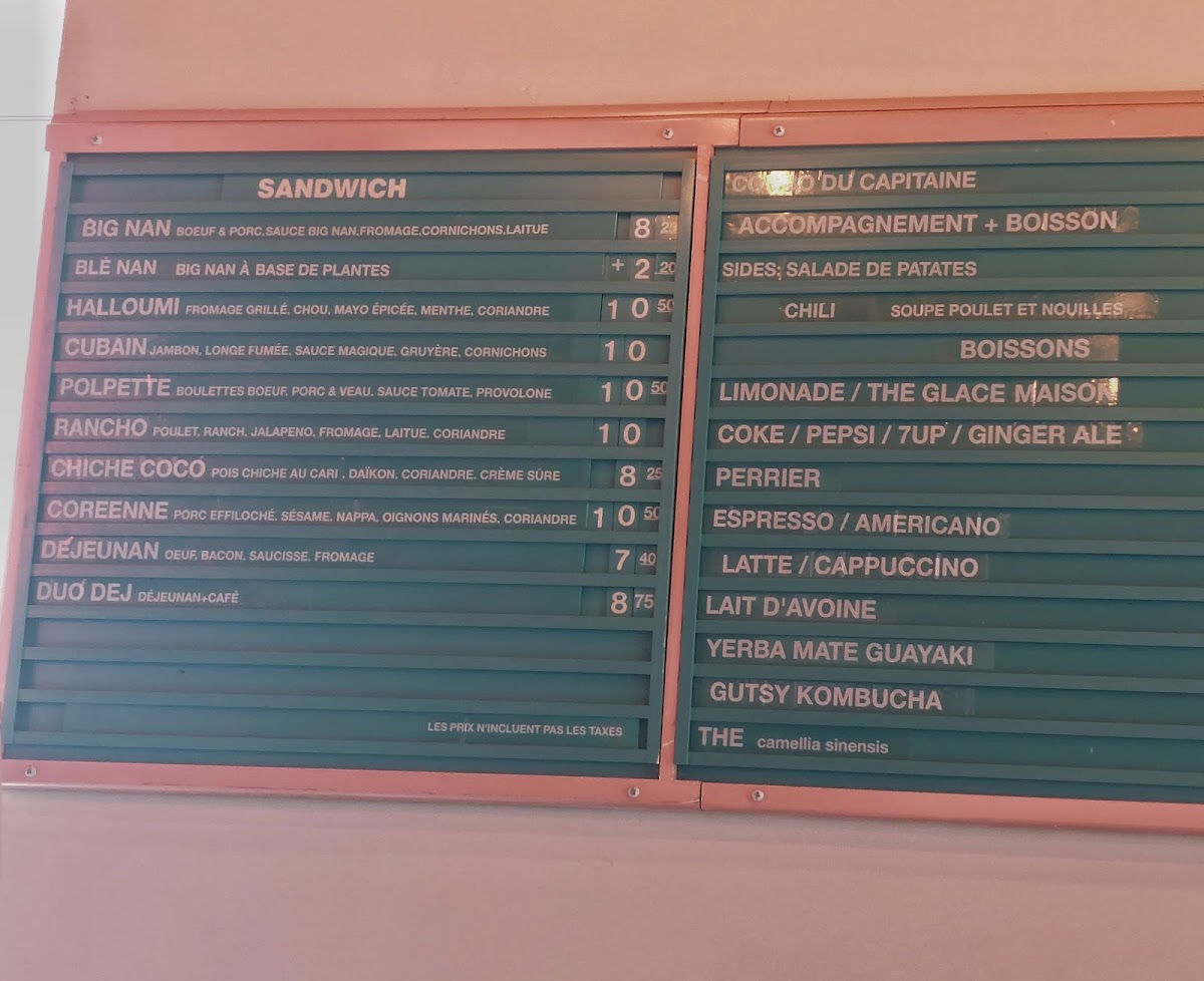 The menu is a celebration of flavors, offering a variety of sandwiches that cater to every palate. Start your adventure with the Coréenne—a Korean-inspired masterpiece of gochujang pulled pork, complemented by marinated onions, crisp napa, fresh coriander, and sesame for a delightful crunch, all for just CA$13.00. Or try the fan-favorite Big Nan, featuring a hearty blend of beef and pork, luscious cheese, and the signature big naan sauce accompanied by fresh salad and pickles—all for a mere CA$11.00. Each bite bursts with flavor, and patrons rave that the Big Nan is a worthy rival to fast-food giants, proving that fast can also mean fabulous.